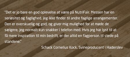 NutriFair er Danmarks specialiserede fagmesse for husdyrproducenter. Vi glæder os til at se dig igen til næste NutriFair. Kom og mød udstillere og nye produkter fra branchen. Oplev et stærkt konferenceprogram og få ny viden og inspiration med hjem fra de topaktuelle foredrag på scenen. Der er gratis indgang for fagpersoner på NutriFair.